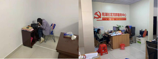 社区电话接转答疑等工作,为铭湖社区筑起“红色防线”。