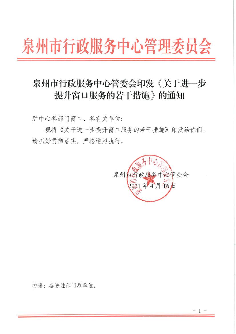 印发《关于进一步提升窗口服务的若干措施》的通知