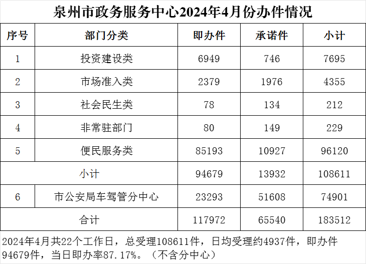 av探花 政务服务中心2024年4月份办件情况
